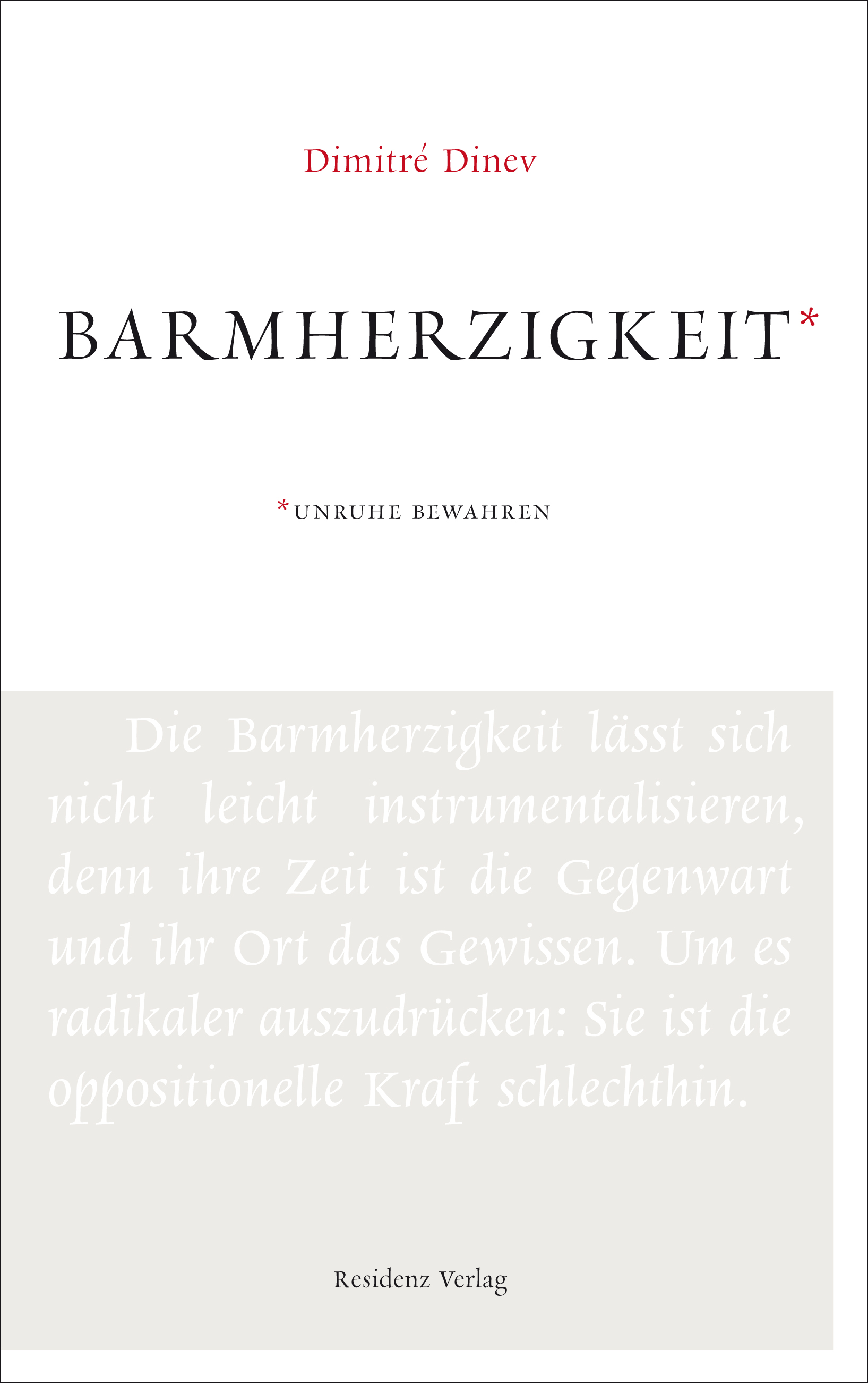 Barmherzigkeit – was hat dieser Begriff in unserer Gesellschaft für eine Bedeutung? Oder hat er gar keine mehr? Dimitré Dinev hat sich in vier kurzen Essays mit dieser Thematik beschäftigt. Er erzählt von persönlichen Erlebnissen, von Bettelkindern, die in den Westen verschleppt dem Kapitalismus dienen, von einem Land, in dem man anstelle von Frieden von Sicherheit spricht … Dimitré Dinev skizziert eine Gesellschaft, die nicht barmherzig sein kann, und stellt ihr ein Ich gegenüber, das bereit ist, Verantwortung zu übernehmen. Pointiert und gleichnishaft verpackt er eben diese Verantwortung in Geschichten, Fragestellungen, eingängige Thesen.