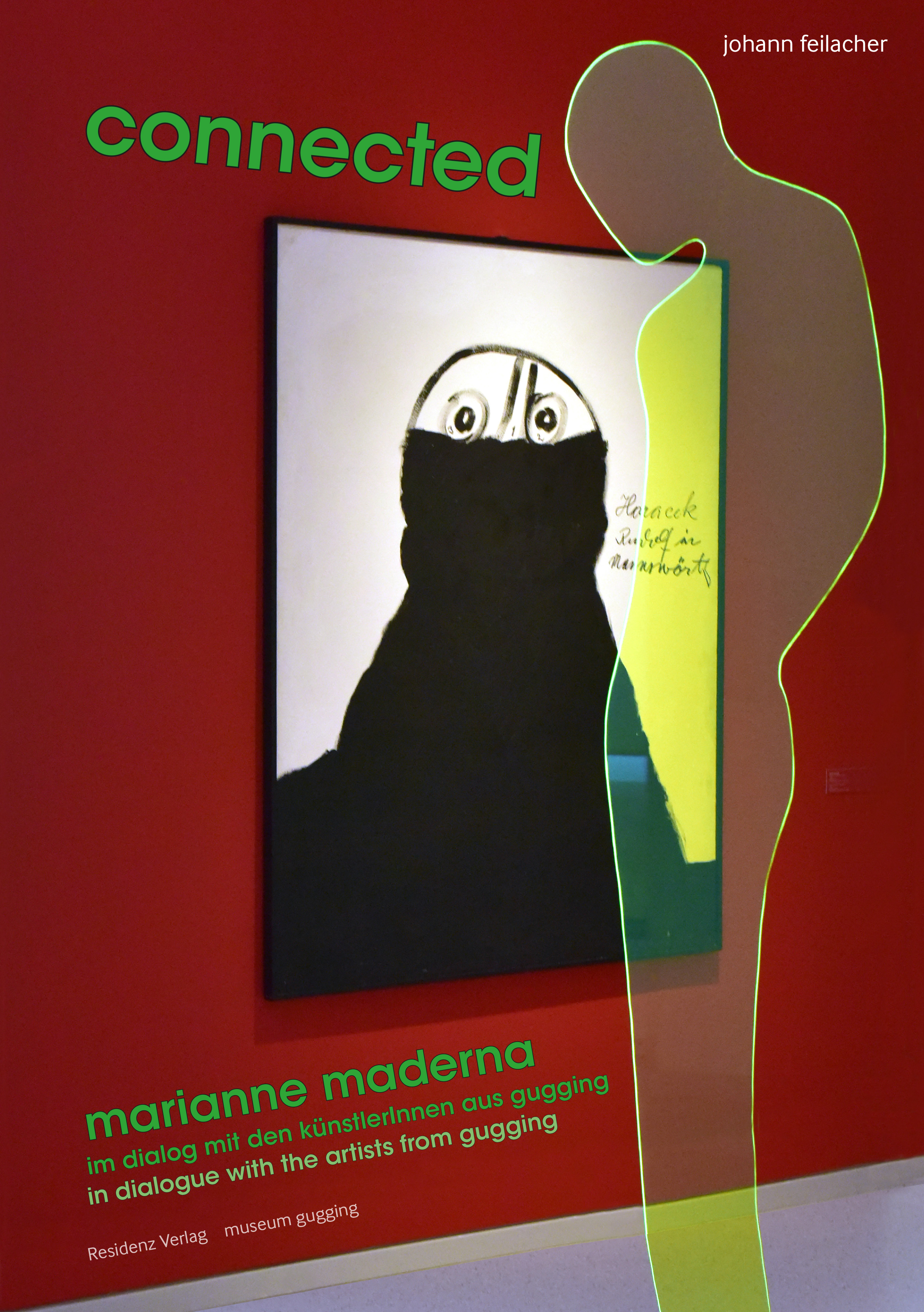 HUHUMAN – wie ein Kinderschreck – nennt Maderna die flachen hängenden Figuren aus fluoreszierendem Plexiglas, die in der Ausstellung connected auf Meisterwerke der Gugginger KünstlerInnen treffen. Die Figuren zeigen wiederkehrende archetypische Verhaltensmuster und bilden ein Welttheater. Das Apotropäische, der Unheil abwendende Abwehrzauber als uralte Funktion der Kunst ist Zweckbestimmung dieser Werke. Die schonungslos und übersteigert wiedergegebenen Beobachtungen der Gugginger sind, wie die HUHUMAN, Spiegel wie Mahnung. Mit einem Essay der Kunsthistorikerin Eva Badura-Triska und einem Interview mit dem künstlerischen Direktor des museum gugging, Johann Feilacher.